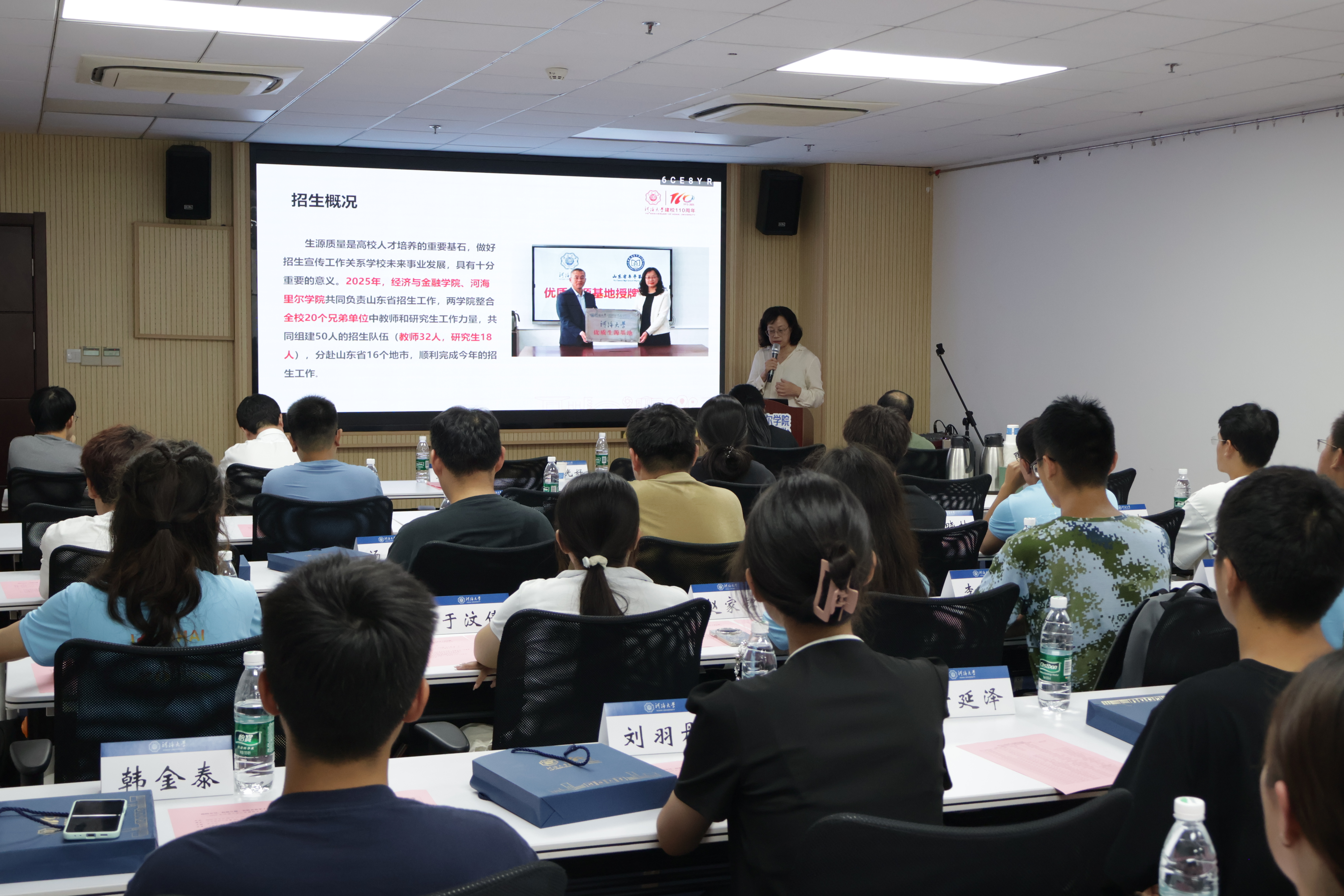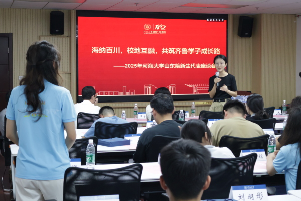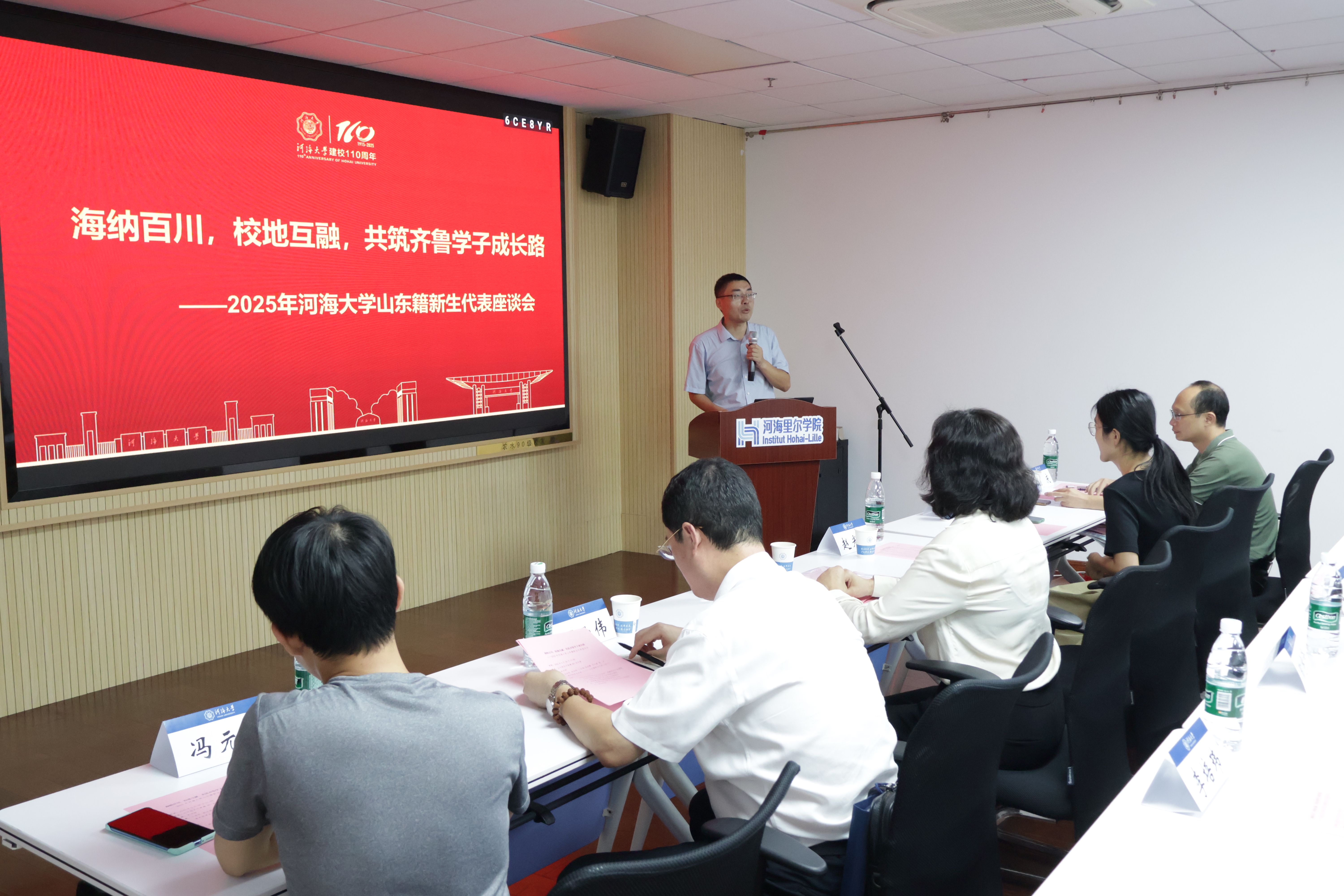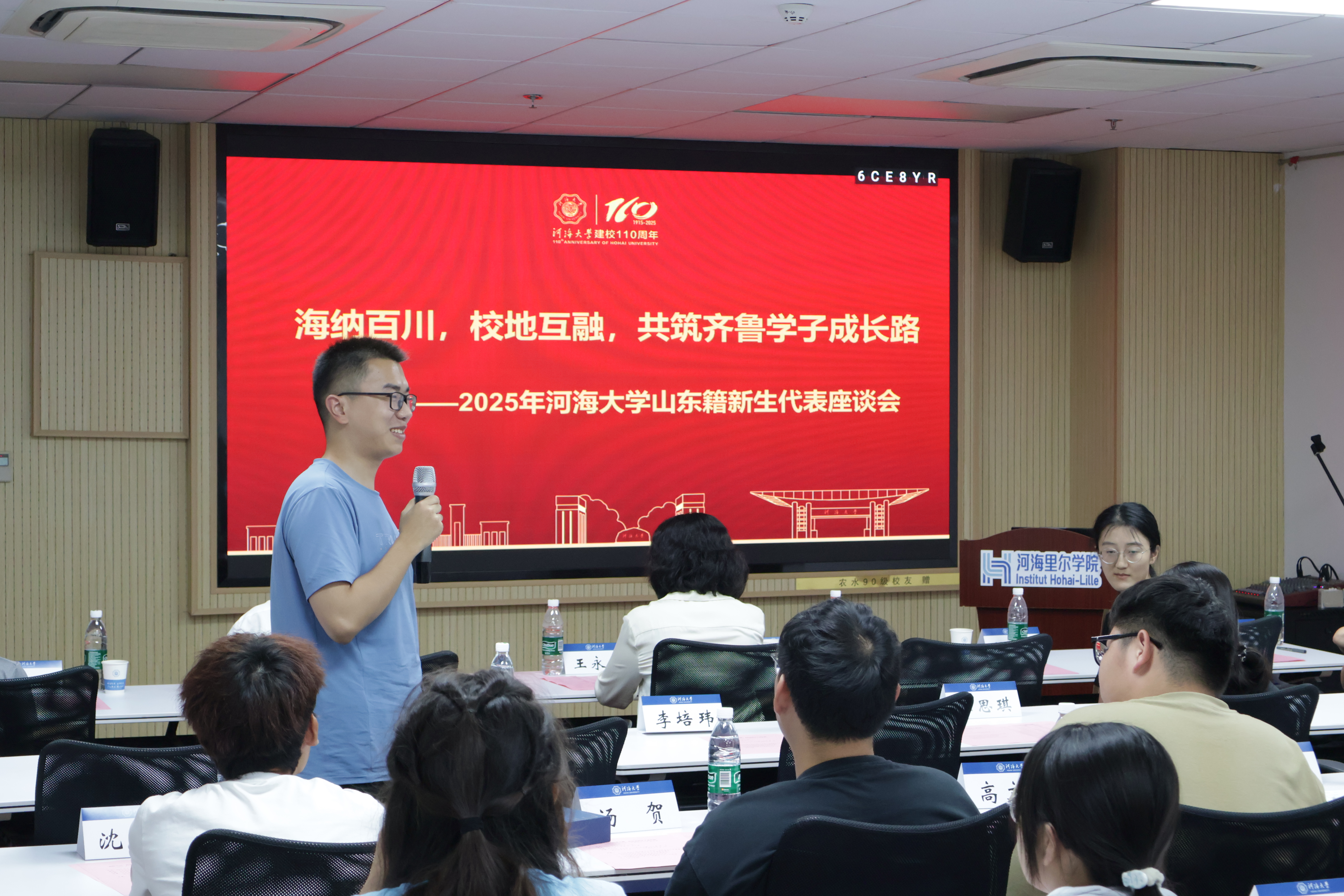 2025年9月28日,为助力2025级山东籍本科新生更快地融入河海大家庭,顺利开启大学征程,我院会同经济与金融学院,于河海大学江宁校区行政楼401会议室组织召开“海纳百川,校地互融,共筑齐鲁学子成长路”2025年河海大学山东籍新生代表座谈会。河海里尔学院党委王永芝书记、组织员兼研究生辅导员颜庆老师,经济与金融学院党委赵光好副书记、丁云伟老师,学校本科招生办公室冯元晨老师,数学学院俎成霞老师,大禹学院2023级本科生王思琪,河海里尔学院2022级本科生、新生助学导师陶宇泽、李培玮,与全校来自山东省烟台、潍坊、聊城等10个地市18所中学的22名本科新生代表面对面交流,现场气氛热烈。会议由赵光好副书记主持。