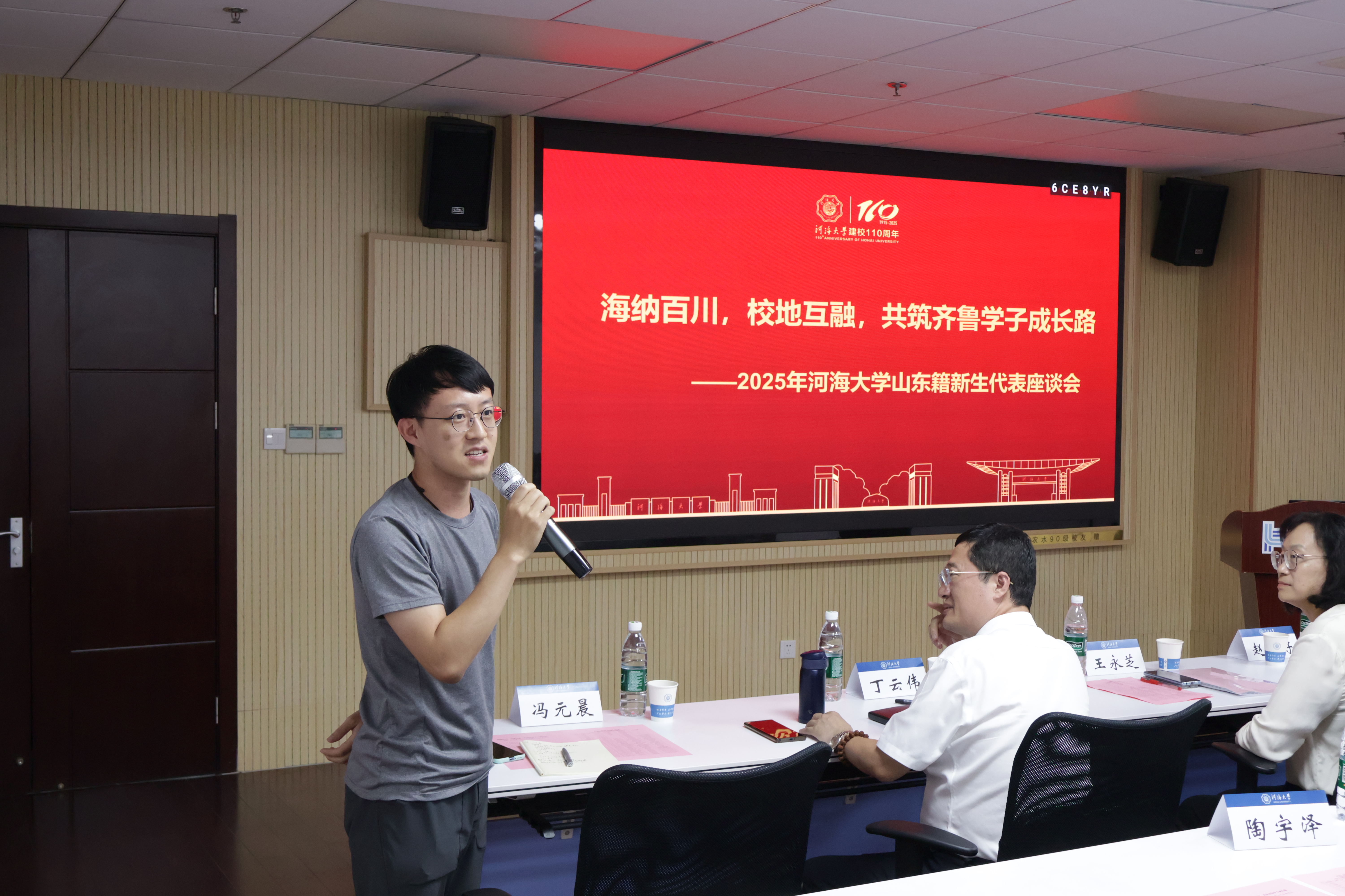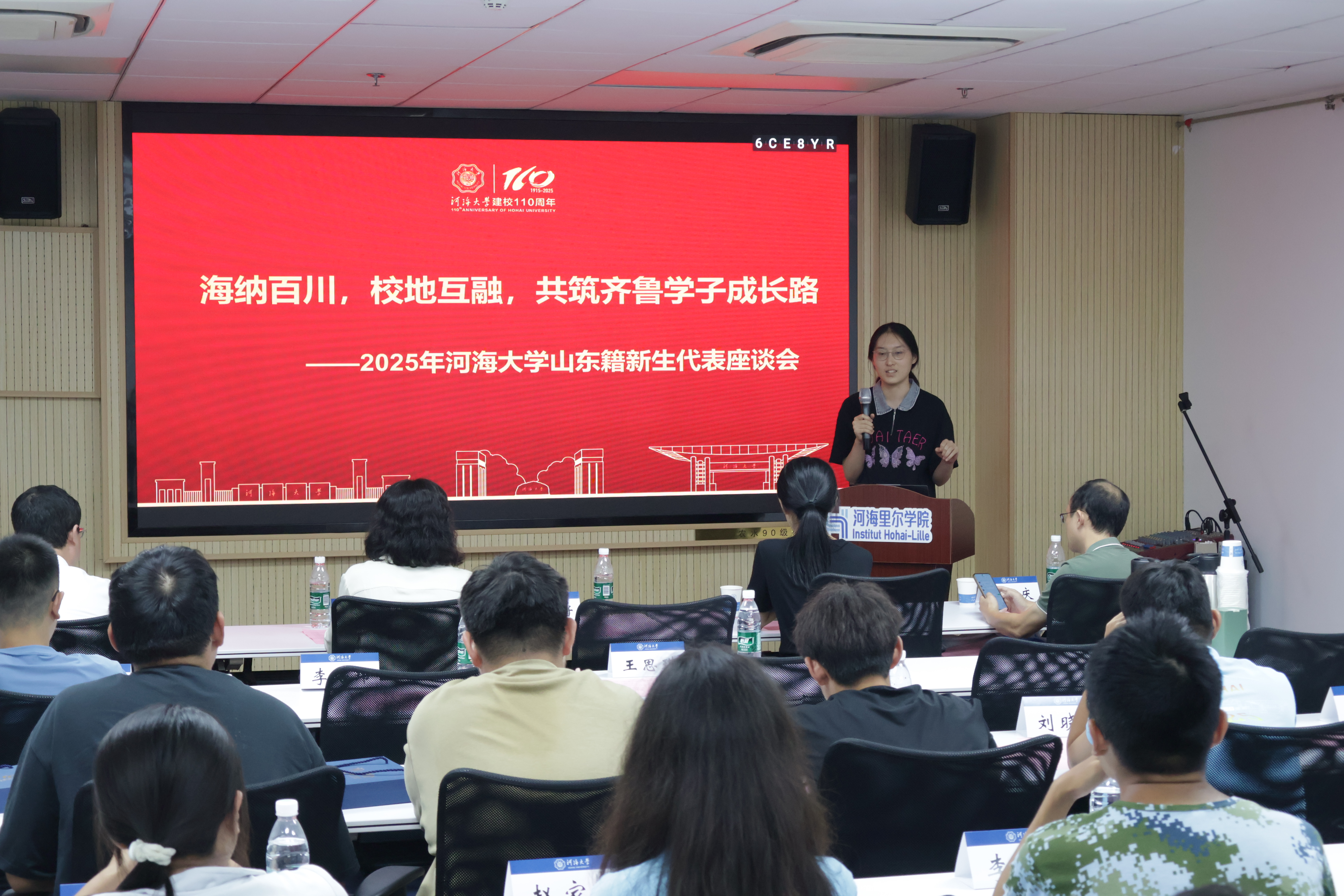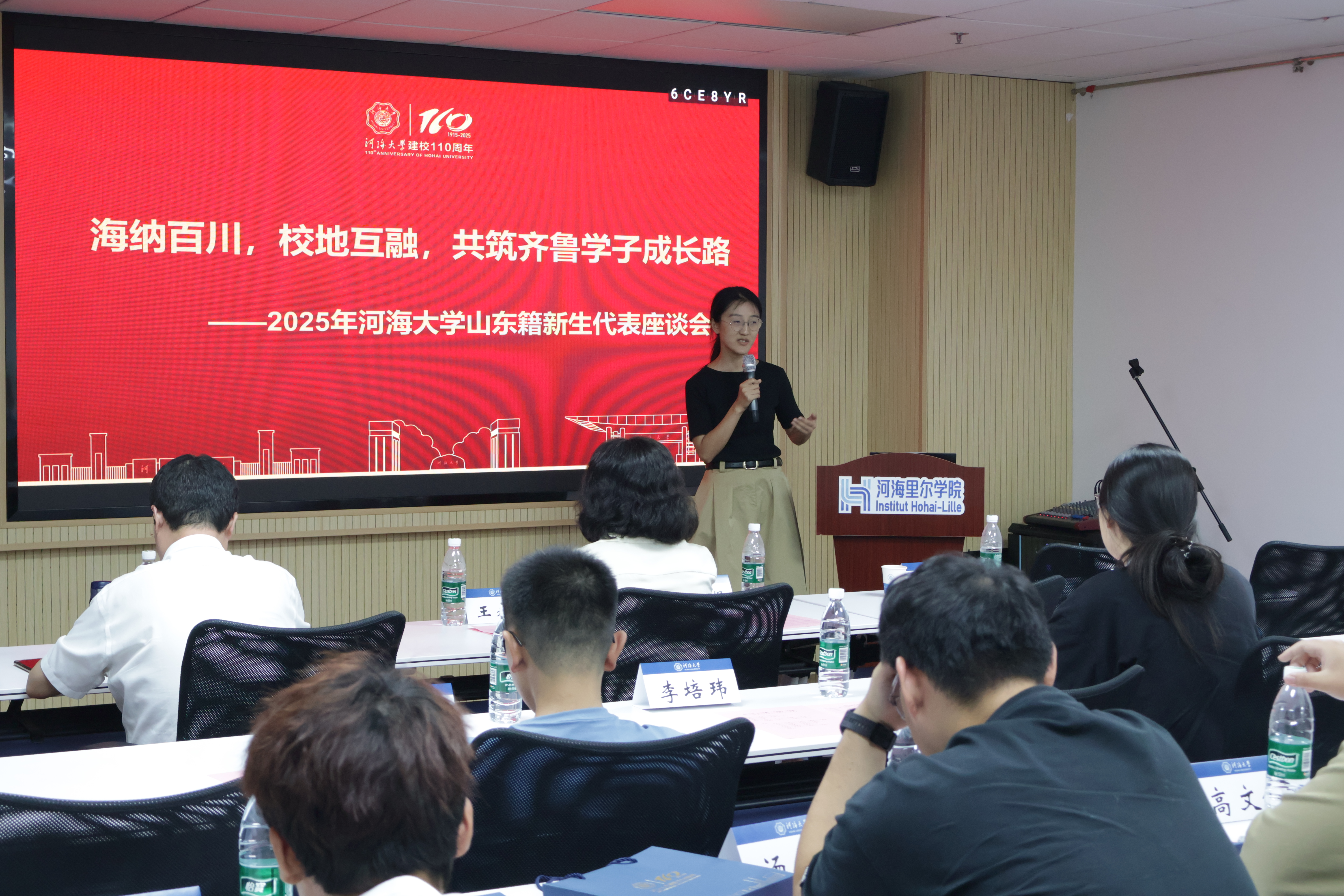 2025年9月28日,为助力2025级山东籍本科新生更快地融入河海大家庭,顺利开启大学征程,我院会同经济与金融学院,于河海大学江宁校区行政楼401会议室组织召开“海纳百川,校地互融,共筑齐鲁学子成长路”2025年河海大学山东籍新生代表座谈会。河海里尔学院党委王永芝书记、组织员兼研究生辅导员颜庆老师,经济与金融学院党委赵光好副书记、丁云伟老师,学校本科招生办公室冯元晨老师,数学学院俎成霞老师,大禹学院2023级本科生王思琪,河海里尔学院2022级本科生、新生助学导师陶宇泽、李培玮,与全校来自山东省烟台、潍坊、聊城等10个地市18所中学的22名本科新生代表面对面交流,现场气氛热烈。会议由赵光好副书记主持。