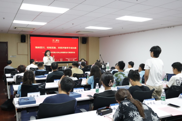 王永芝书记代表山东招生组向顺利入读我校的新同学表示热烈欢迎,她阐述河海大学深厚的办学传统,鼓励同学们承家国情怀、担时代使命,将个人理想融入国家发展大局,以扎实努力为未来打下坚实基础。王书记还向同学们介绍了2025年山东省招生情况,她鼓励同学们勇攀高峰,追求卓越,以出色的表现做大学和高中的“双重代言人”,并发扬主人翁精神,积极扩大我校在中学的影响力。