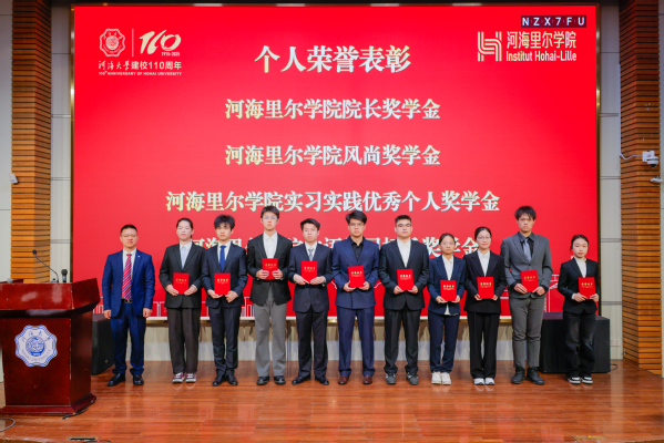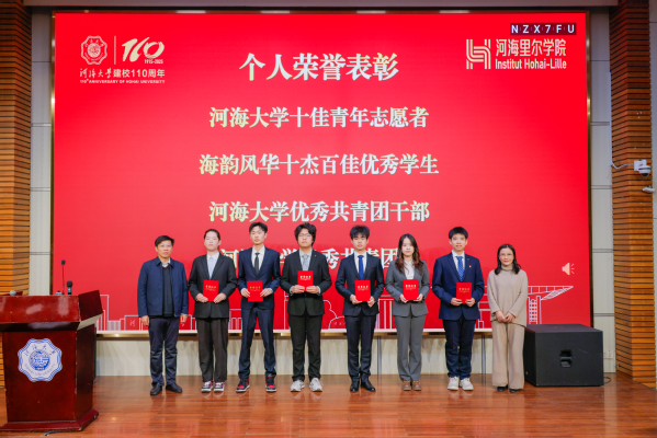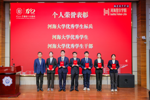 2025年11月29日,河海里尔学院“星河万里,奋进当时”主题大思政课暨2025年学生表彰大会在河海大学江宁校区会议中心顺利举办。河海大学副校长吴峰,学生工作处处长王方,国际合作处副处长吴瑶,教务处副处长陈丹,机电工程学院、河海里尔学院副院长苑明海,土木与交通学院党委副书记安杰晶,机电工程学院机械工程系主任张薇薇,我院2025级班导师张洪双,学院党委书记王永芝、院长朱其志等领导嘉宾出席大会,学院全体教职员工及2025级本科生、各年级获奖学生代表参加活动。大会由学院党委副书记、副院长胡鹤轩主持。